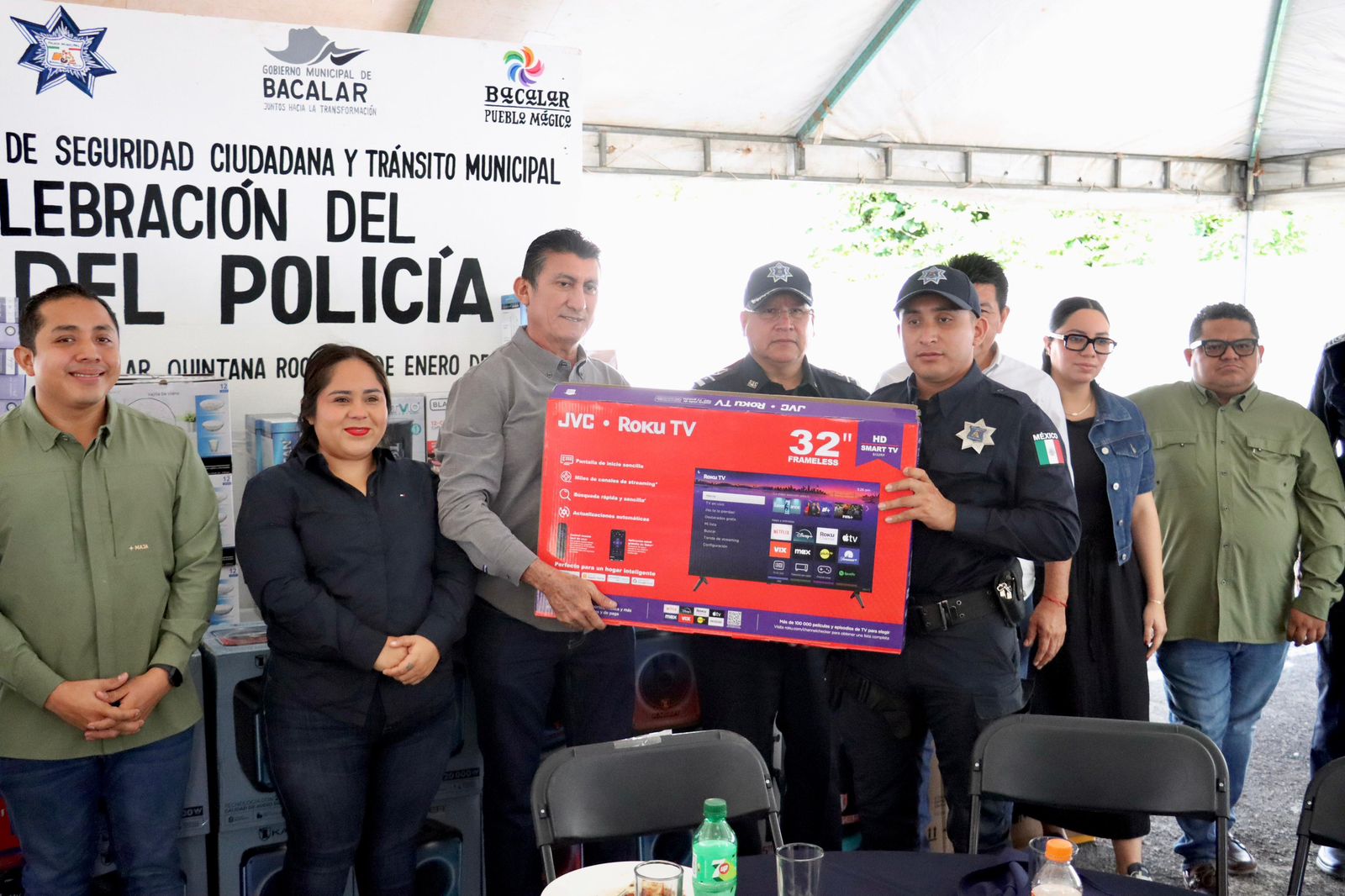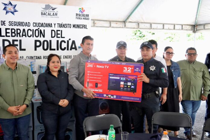 BACALAR, 16 de enero.En el marco del Día del Policía, el presidente municipal de Bacalar, José Alfredo “Chepe” Contreras, festejó con emotivo convivio a las y los policías municipales, para reconocer, pero sobre todo para agradecer y enaltecer la gran labor que hacen todos los días por la transformación de un destino más seguro y próspero para todos.