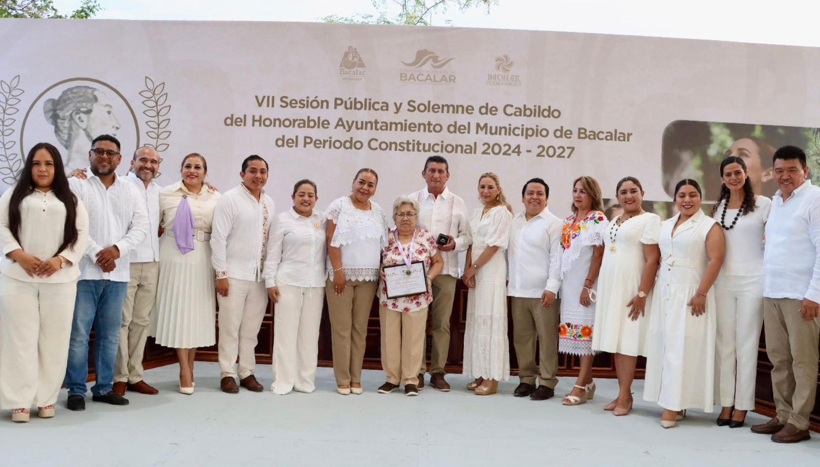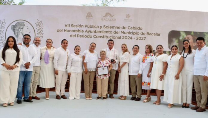 En el marco de la VII Sesión Pública y Solemne del H. Ayuntamiento de Bacalar, la ciudadana Ayde del Socorro Potenciano Pérez fue galardonada con la Medalla al Mérito de la Mujer “Rossina Castillo Rodríguez”, a quien se le reconoció por su destacada labor, loable trayectoria y valiosas aportaciones que han contribuido significativamente al desarrollo del municipio.