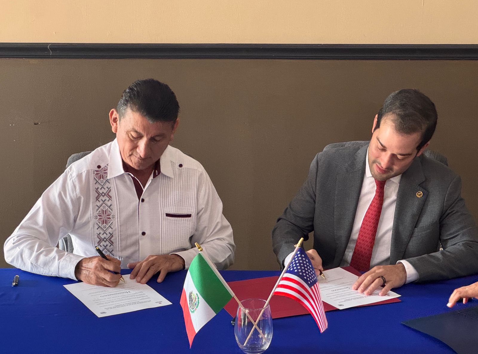 EAGLE PASS, TEXAS, ESTADOS UNIDOS, 10 de septiembre. Con el firme compromiso de fortalecer los lazos de amistad, colaboración y apoyo mutuo, el presidente municipal de Bacalar, José Alfredo “Chepe” Contreras y el alcalde de Eagle Pass, en Texas, Aaron Valdez, firmaron la carta de intención de Hermanamiento para dar mayor impulso a ambas regiones en diferentes ámbitos.