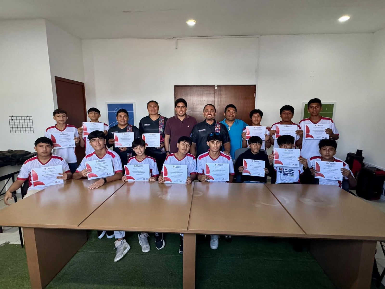 A la entrega del reconocimiento acudieron los 14 niños de la Isla y Zona Continental, que conforman la selección infantil varonil, quienes reciben el respaldo del Gobierno de Isla Mujeres.