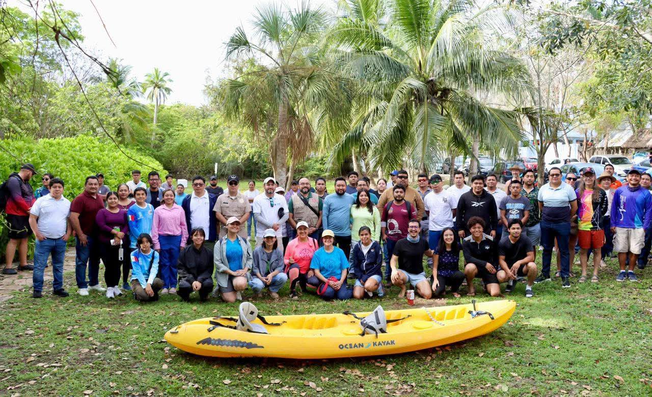 BACALAR, 22 de marzo. En el marco del Día Mundial del Agua, el gobierno de Bacalar que encabeza el presidente municipal José Alfredo “Chepe” Contreras, con la participación activa de los tres órdenes de gobierno, iniciativa privada, prestadores de servicios náuticos, instituciones educativas, sociedad civil y personas voluntarias, se sumaron a una gran jornada de limpieza lagunar en el Ecoparque Bacalar.